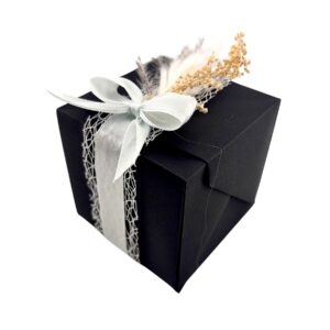 Boîte cadeau noire artisanale – Mariage, baptême, événement.